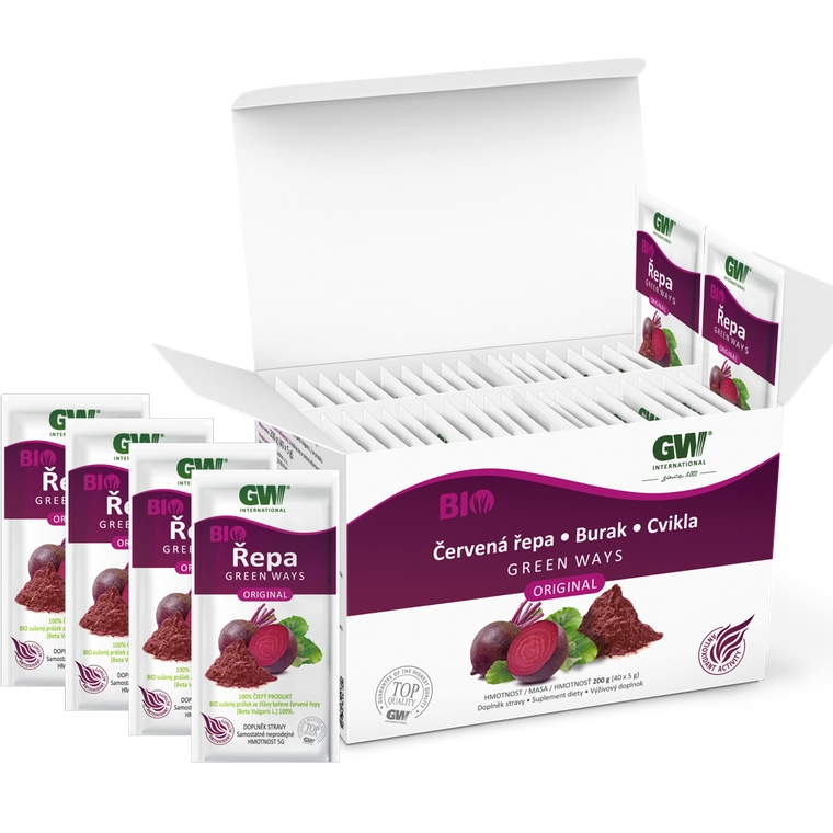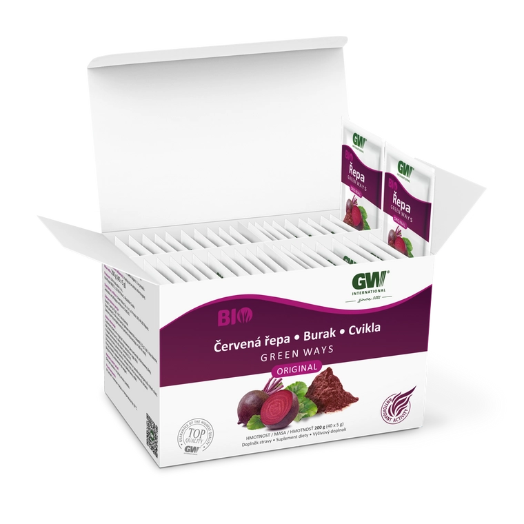 Give your body the vitamins and minerals it needs with a refreshing Green Ways Beetroot drink. 100% pressed and gently-dried beetroot juice does not contain coarse insoluble fibre. Valuable nutrients are therefore well absorbed, while it is also suitable for a residue-free diet. ORGANIC Dried BEETROOT Juice Powder contains a wealth of vitamins, minerals, antioxidants, and other healthy substances that help the organism regenerate. Practical preservation as a gently-dried powder avoids the disadvantages you might encounter when storing whole beetroots, which, when stored in the wrong conditions, are highly susceptible to rot, while at the same time gradually losing the antioxidants they contain.