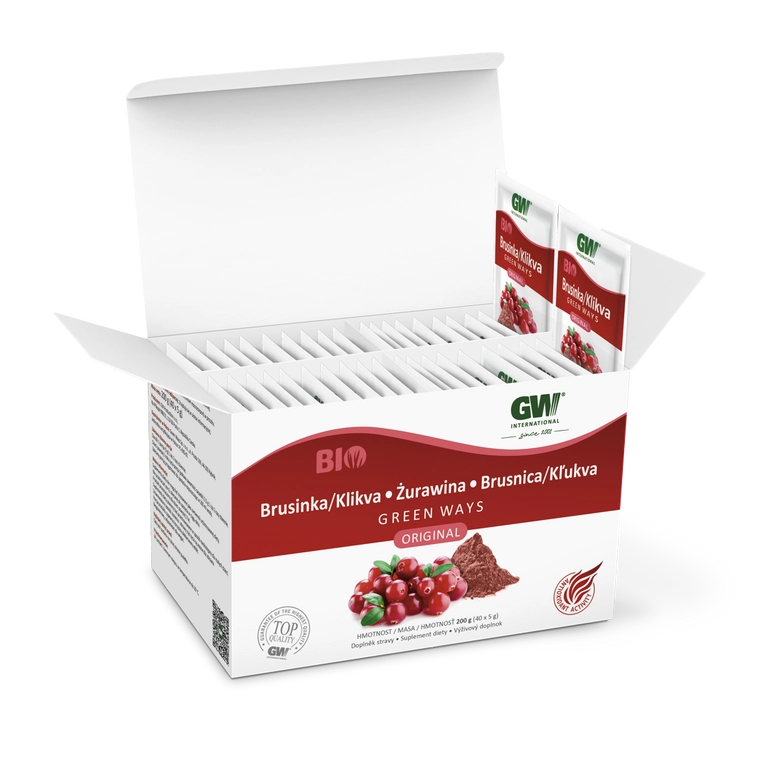 Discover the nutritional value of a Green Ways CRANBERRY drink. The 100% pressed and gently-dried juice of the American cranberry (Vaccinium macrocarpon) is a rich source of vitamins, minerals, and other healthy substances. ORGANIC Dried CRANBERRY Powder contains a wealth of biologically-active substances thanks to environmentally-friendly forest management and gentle processing. Which is why we deliberately left the cranberry skins on, given that they're such an important source of anthocyanins and arbutin.