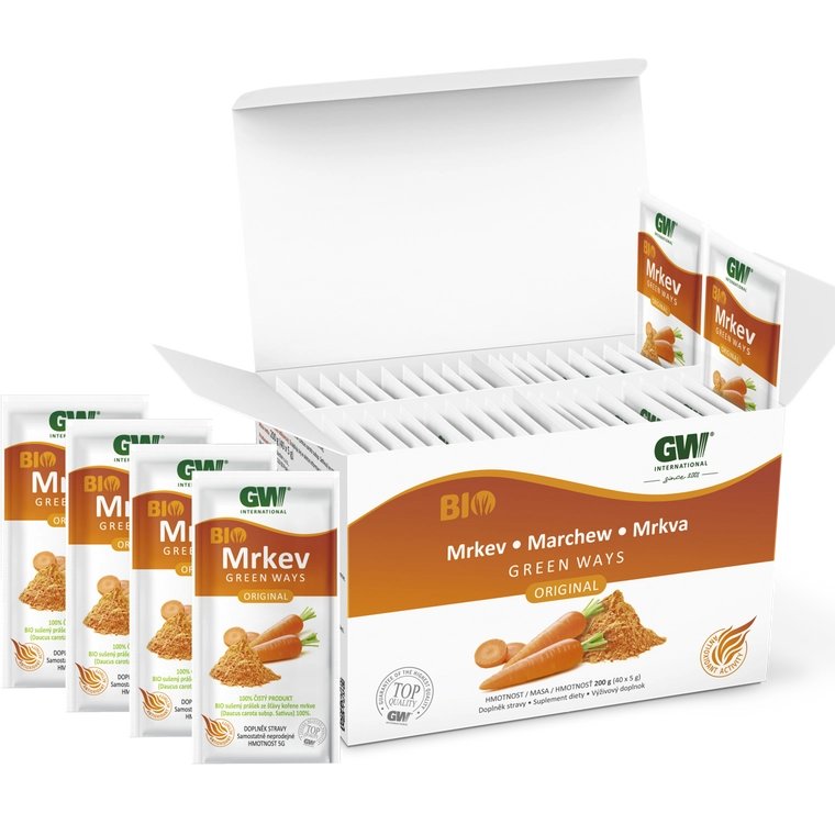 Unterstützen Sie Ihren Organismus mit einem Getränk aus Green Ways Karotte und gönnen Sie Ihrem Körper wertvolle Nährstoffe in natürlicher Form. Der 100 % entsaftete und anschließend schonend getrocknete Karottensaft enthält keine festen unlöslichen Ballaststoffe, daher hat er eine hohe Bioverfügbarkeit und ist auch für eine ballaststofffreie Diät geeignet. Das BIO Pulver aus dem getrockneten Wurzelsaft der KAROTTE von Green Ways enthält wichtige Vitamine, Mineralstoffe, Antioxidantien, Carotinoide und Beta-Carotin, die Gesundheit, Immunsystem und allgemeine Vitalität unterstützen.