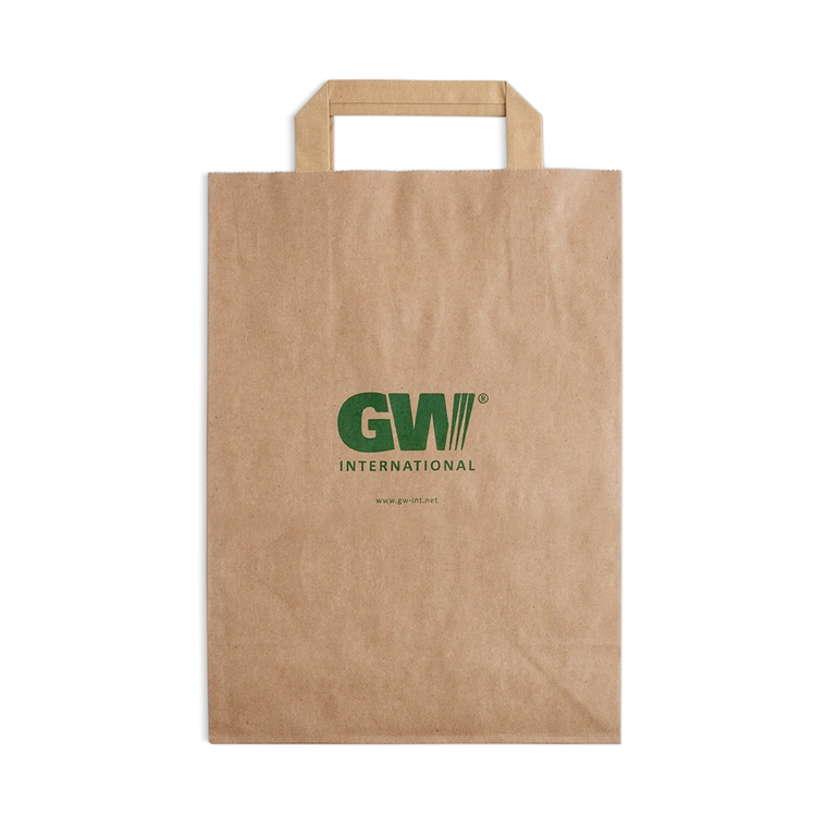 Reklamná taška s logom GW má rozmery 220 x 100 x 310 mm a je vyrobená z hnedého vreckového papiera. Je praktickým doplnkom registračnej súpravy.