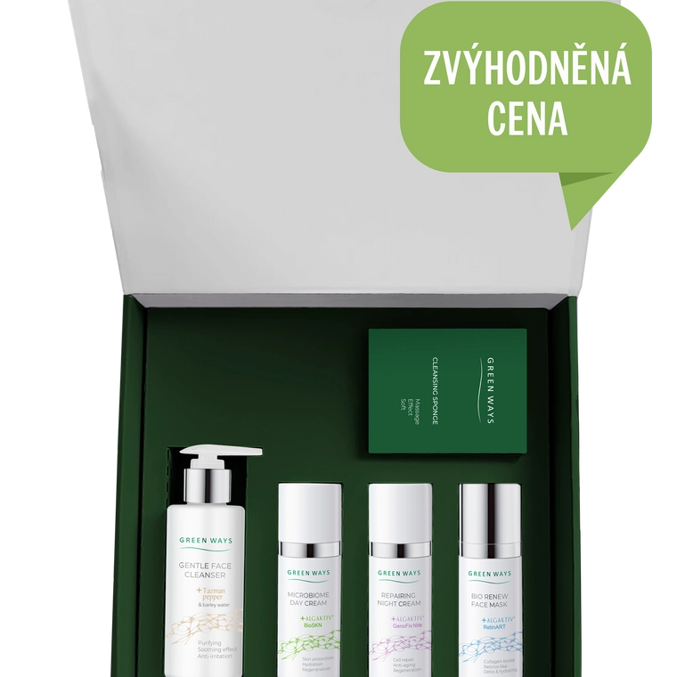 Připravili jsme pro vás exkluzivní dárkové balení kosmetiky Green Ways, které spojuje naše vysoce kvalitní kosmetické produkty do jednoho krásného setu. Součástí dárkové sady je také čisticí houbička na pleť s jemným exfoliačním efektem, která pomáhá odstranit odumřelé kožní buňky a zanechává vaši pleť svěží a revitalizovanou. Doplněk v podobě houbičky je výborným pomocníkem při sundávání masky a při čištění pleti s vaším oblíbeným čisticím gelem. Kosmetická sada Green Ways je nejen krásným dárkem pro vaše blízké, ale také vyjadřuje naši péči o planetu díky ekologickým certifikacím k přírodě ohleduplných ingrediencím.